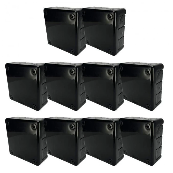 1. Puszka hermetyczna natynkowa 118x118x46mm 12-wlotowa z dławikami gumowymi, IP55 zamknięcie na wkręty czarna EDO 10szt 117.94