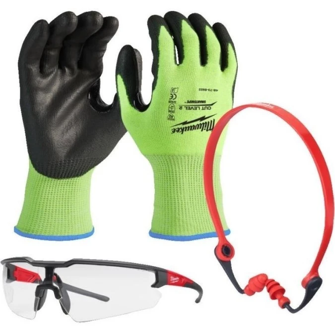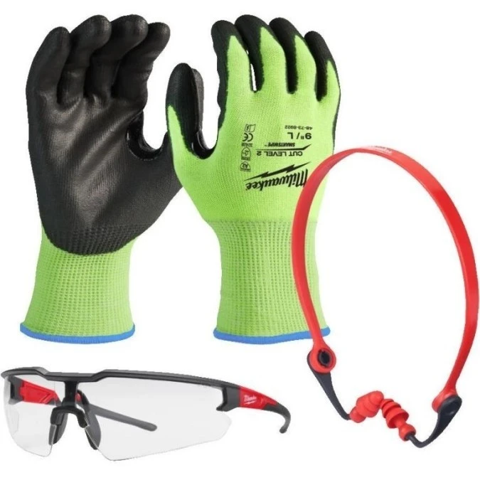 Zestaw ochronny BHP transportowy (okulary, stopery, rękawiczki rozmiar 9/L) MILWAUKEE
