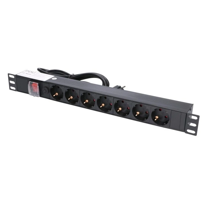 12. Listwa zasilająca 19 1U, 7 gniazd EU, z wyłącznikiem, 2m Extralink EXPDU7EU SW 83.55