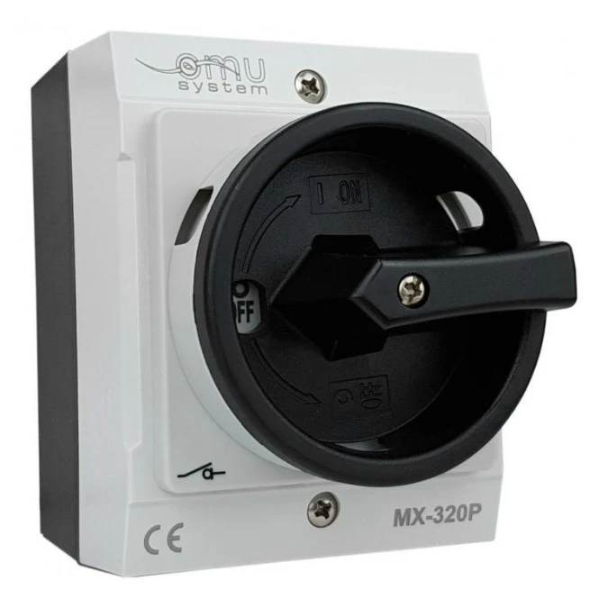 4. Rozłącznik trójfazowy łącznik krzywkowy 3x20A 4kW w obudowie szarej IP65 MX-320P XBS 39.48