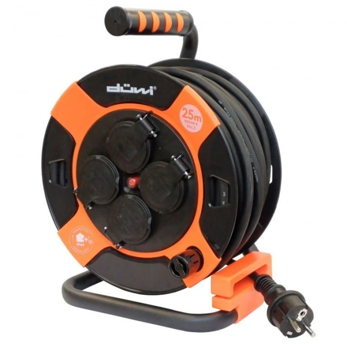 Przedłużacz budowlany zwijany na bębnie Rozgałęźnik na 4 gniazda [2P+Z] 230V IP44 na kablu OW 3x1,5mm2 25m HAND