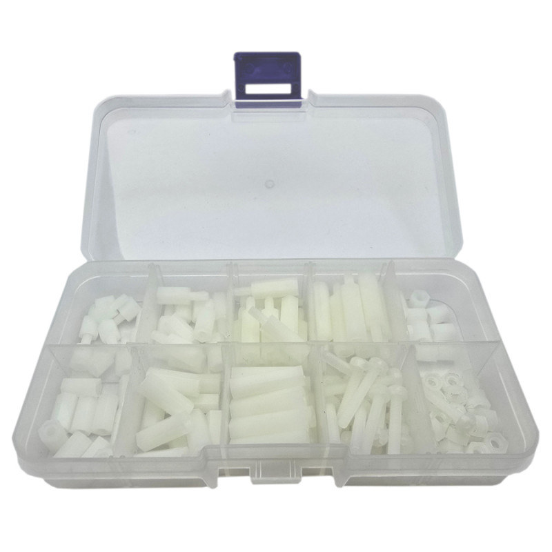 Zestaw Śrubek, nakrętek i tulejek dystansowych 150Szt z tworzywa, białe