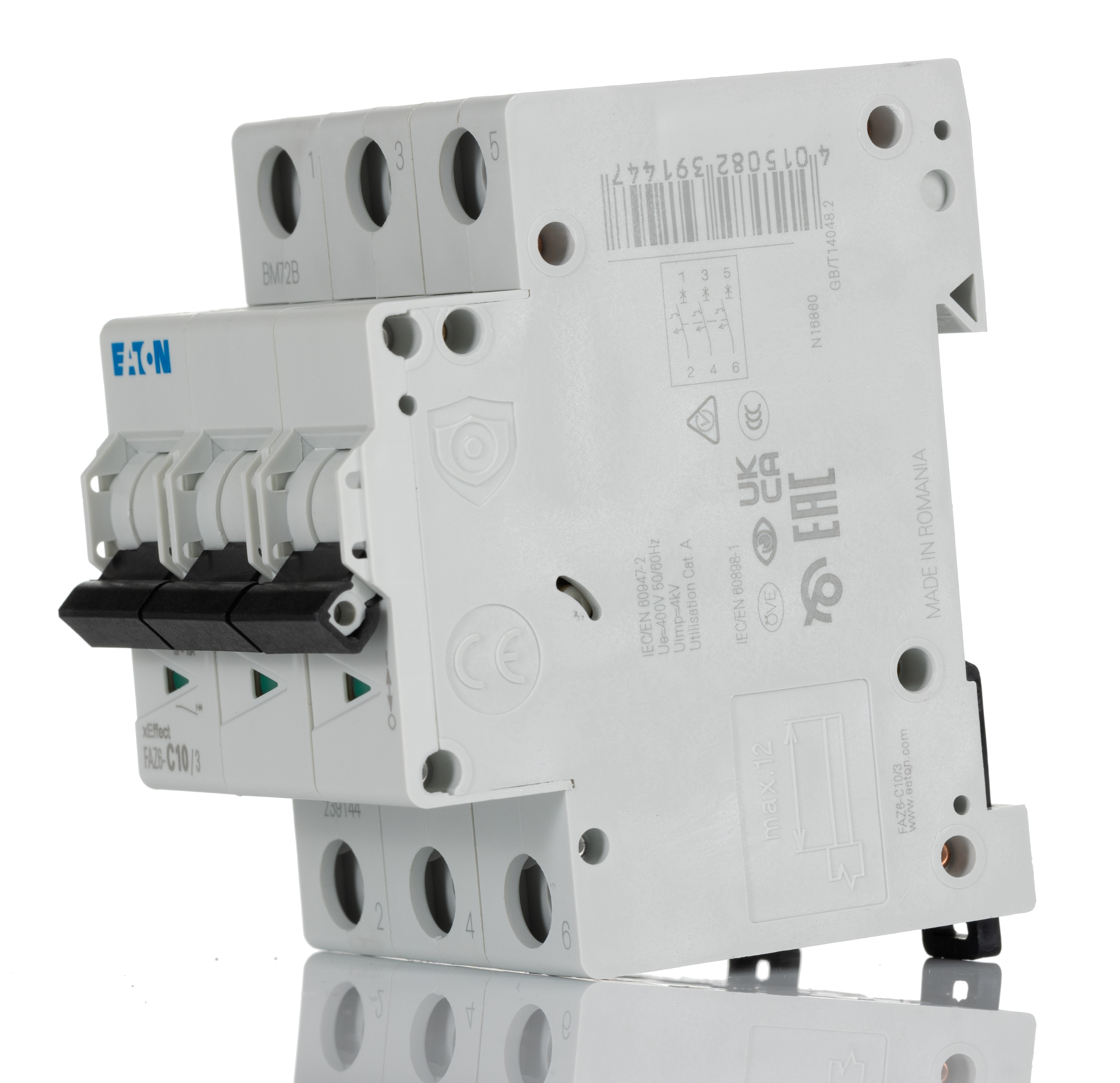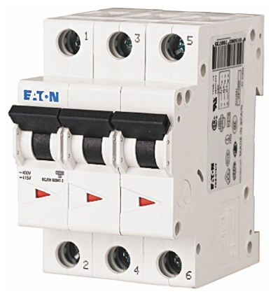 15. Wyłącznik nadprądowy MCB, Typ C, 3-biegunowy, 10A, 230 → 400V, na szynę DIN, Eaton 546.07