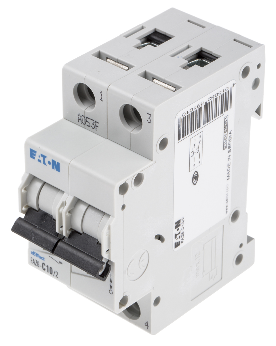 5. Wyłącznik nadprądowy MCB, Typ C, 2-biegunowy, 10A, 230 → 400V, na szynę DIN, Eaton 336.00
