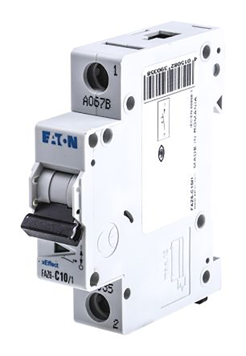 7. Wyłącznik nadprądowy MCB, Typ C, 10A, 230 → 400V, na szynę DIN, Eaton 336.00