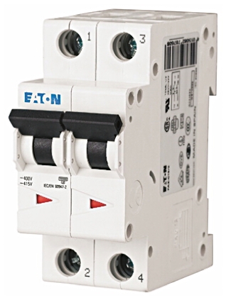 6. Wyłącznik nadprądowy MCB, Typ B, 2-biegunowy, 10A, 230 → 400V, na szynę DIN, Eaton 336.00