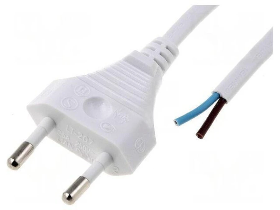 7. Kabel: 2x0,5mm2, CEE 7/16 (C) wtyk, 1,8m LT207 H03VVH2-F 2X0.50 1.8M WHT 13.95