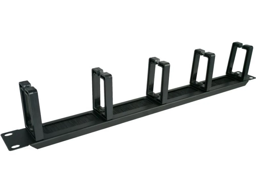 Organizator kabli 1U 19 z przepustem szczotkowym, 5 plastikowych uchwytów, czarny PK048
