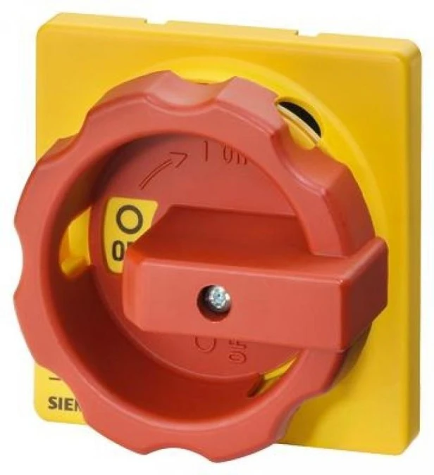 Pokrętło obrotowe żółto-czerwone do rozłączników 3LD25/27/28 montowanych tablicowo otwór centralny 22.5 mm 3LD9284-3D