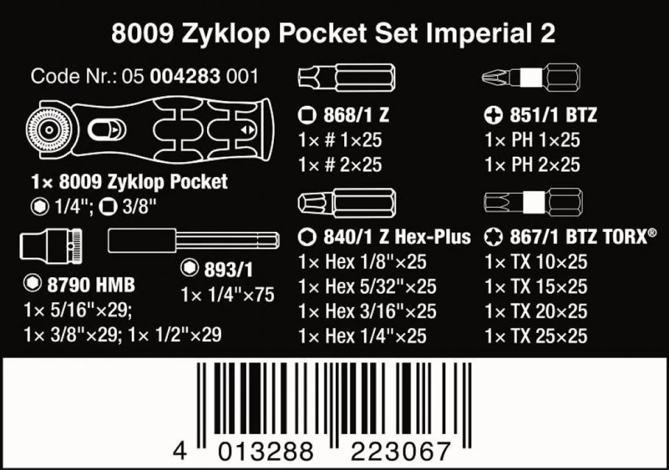 4. Wkrętak do bitów Wera Zyklop Pocket Set Imperial 2 05004283001 1/4 529.00