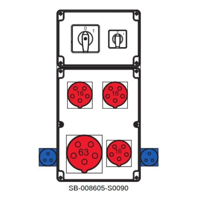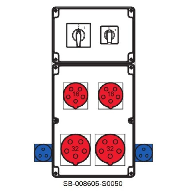 Rozdzielnica 0-1(32A) 0-1(16A) 4x5x32A 2x3x16A INA=32A IP54 SB-008605-S0200-54