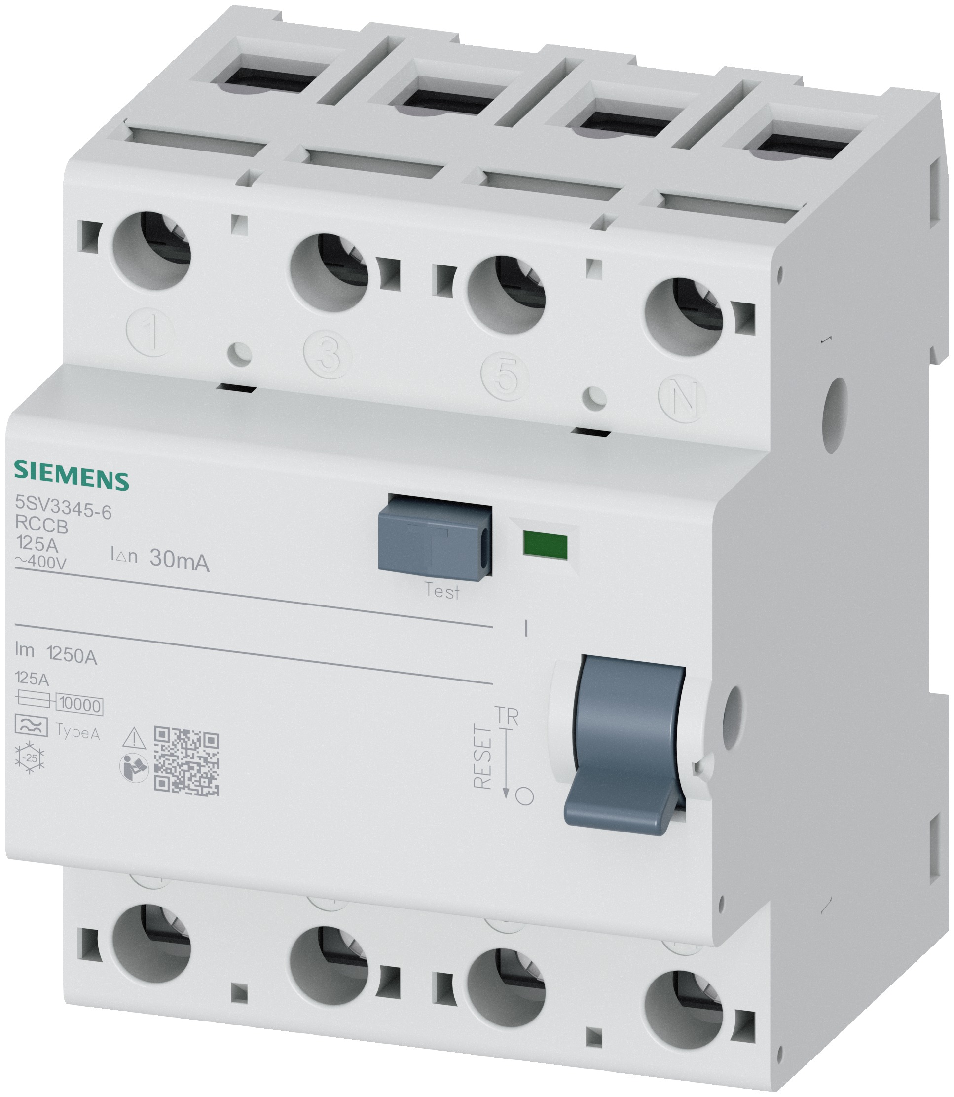 1. RCCB, Typ A, 4-biegunowy, 125A, 500mA, Siemens, 5SV3 5SV3 230/400V 9630.90