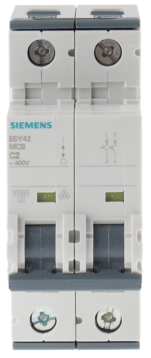 10. Wyłącznik nadprądowy MCB, Typ C, 2-biegunowy, 2A, 400V, 400V, na szynę DIN, Siemens, 5SY4 564.63