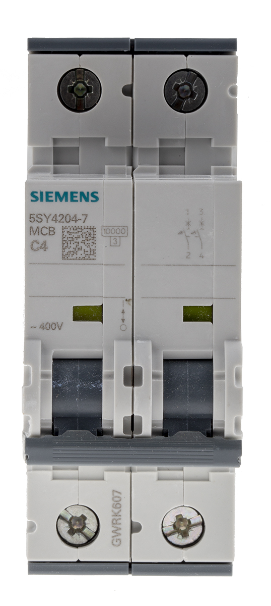 Wyłącznik nadprądowy MCB, 2-biegunowy, 4A, 60V, na szynę DIN, Siemens 5SY4204-7, 5SY4