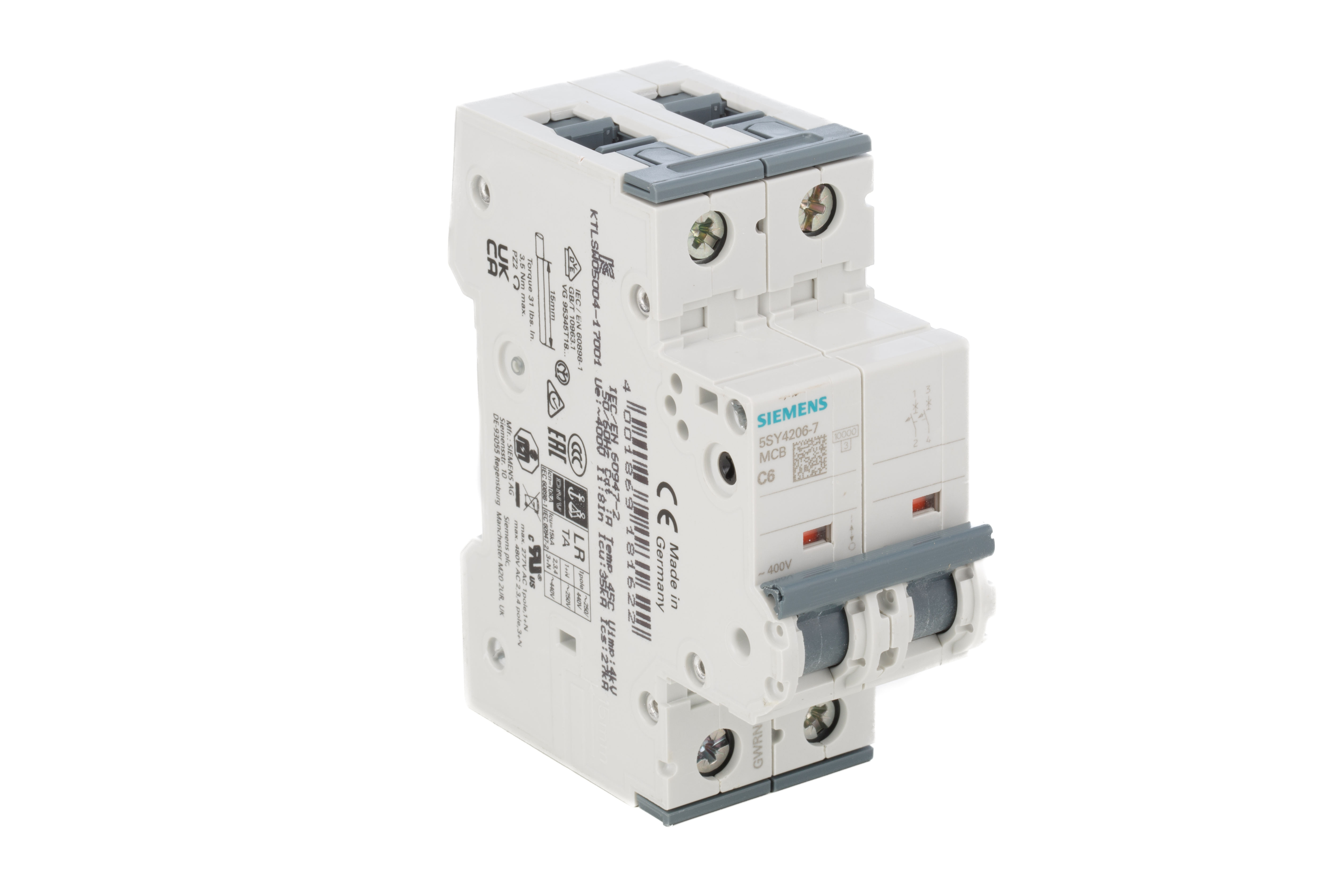 9. Wyłącznik nadprądowy MCB, Typ C, 2-biegunowy, 6A, 400V, na szynę DIN, Siemens, 5SY4 564.63
