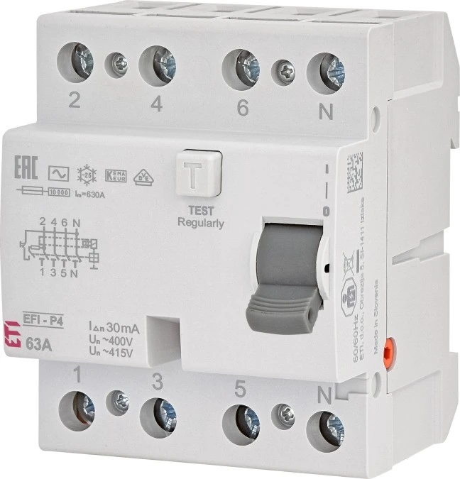 Wyłącznik różnicowoprądowy 4P 63A 0,5A EFI-P4 AC 63/0.5 002061643