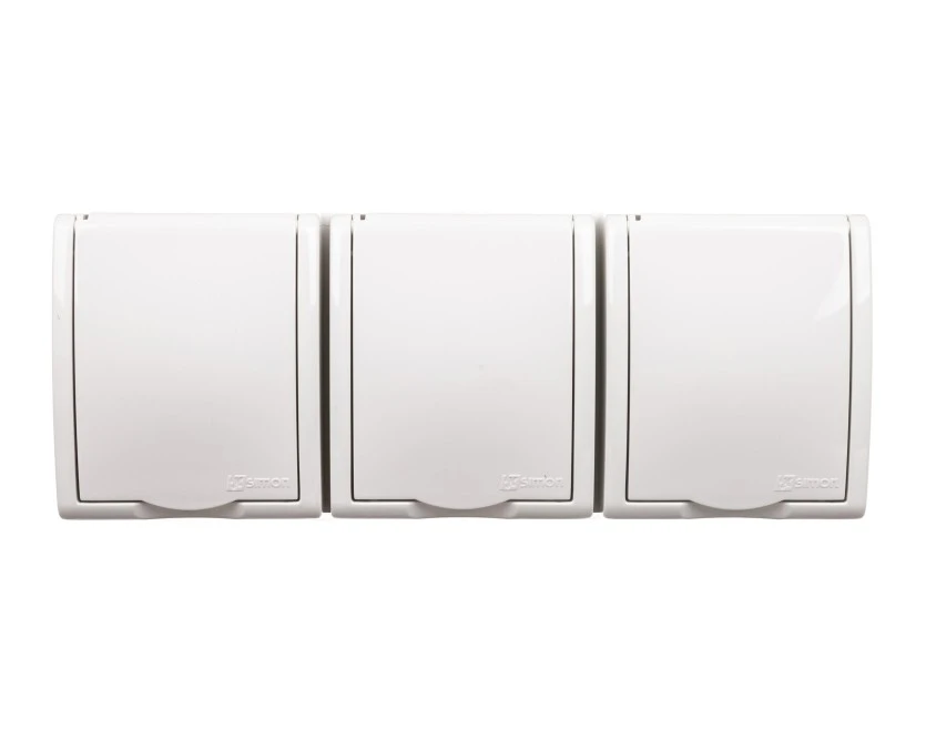 1. Simon Aquarius Gniazdo potrójne z/u bryzgoszczelne IP54 klapka transparentna z przesłonami białe AQGZ1-3Z/11A 59.11