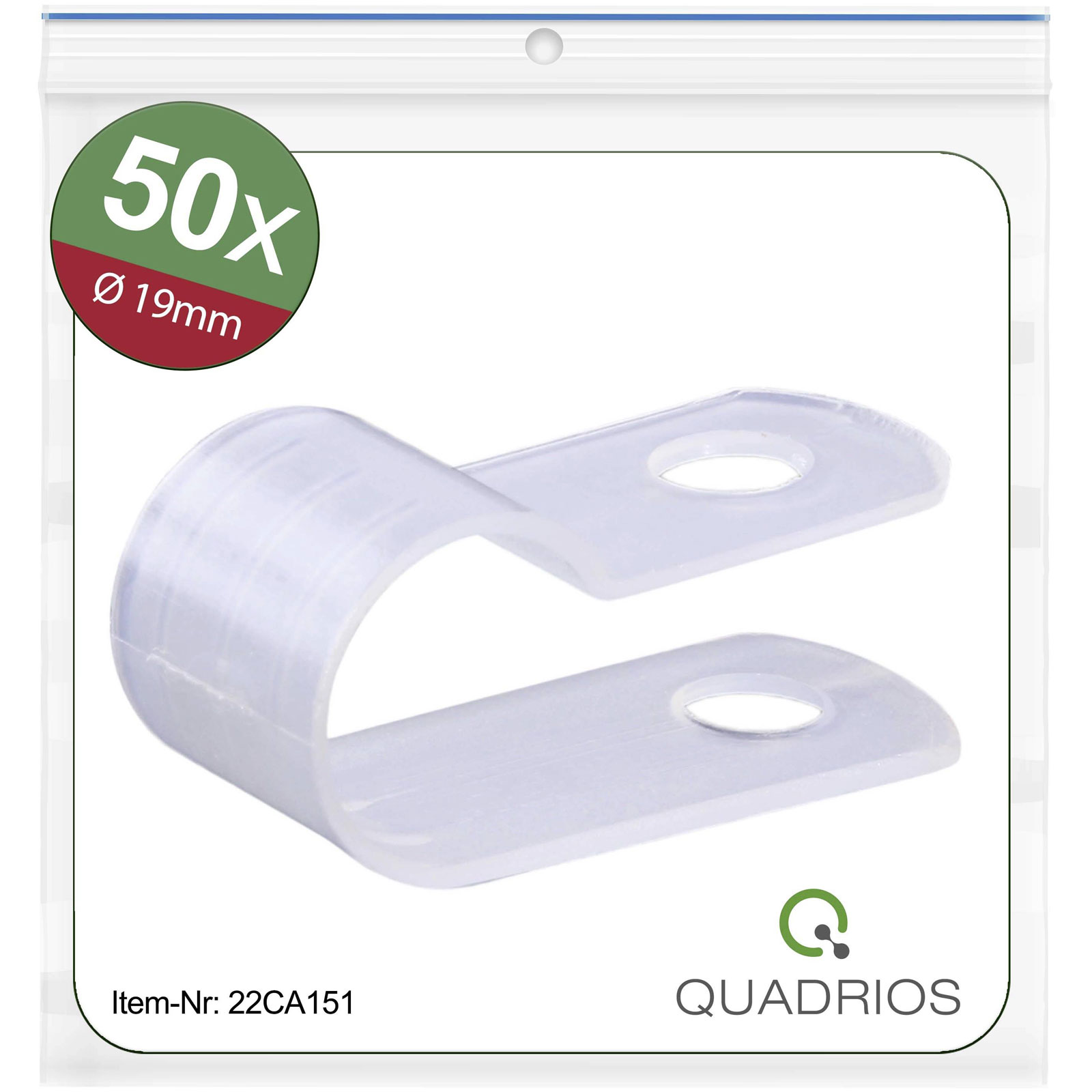 Quadrios 22CA151 Fastener P-Shaped Clamps for Cables & Pipes Ø19mm Ecru