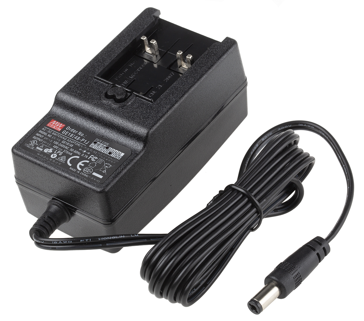 11. Adapter AC/DC Uwy 48V dc Iwy 375mA Złącze 2,1 x 5,5 x 11 mm, biegun dodatni w środku 18W, typ wtyczki: Wtyk 134.94
