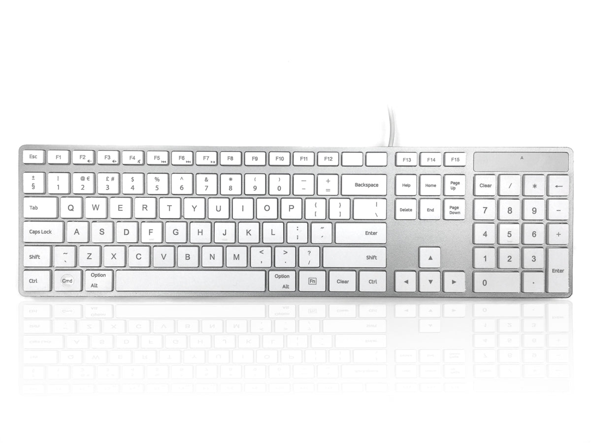 15. Klawiatura Elementy mutlimedialne przewodowa, kolor: Silver, White, USB, QWERTY (Wielka Brytania), Ceratech 137.77