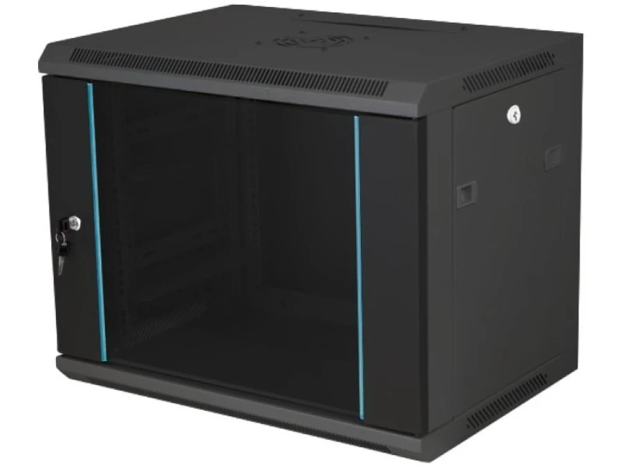 7. Szafka rack wisząca 19 12U 600x450, niedzielona, drzwi szklane jednoskrzydłowe, tył osłona pełna, SW-12U-600-450-N-DSJ-OP-RP-F-C 504.09