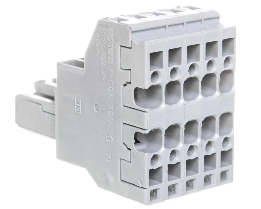 11. Gniazdo X-COM 2-przewodowe 5-biegunowe szare 769-125 /20szt./ 820.90