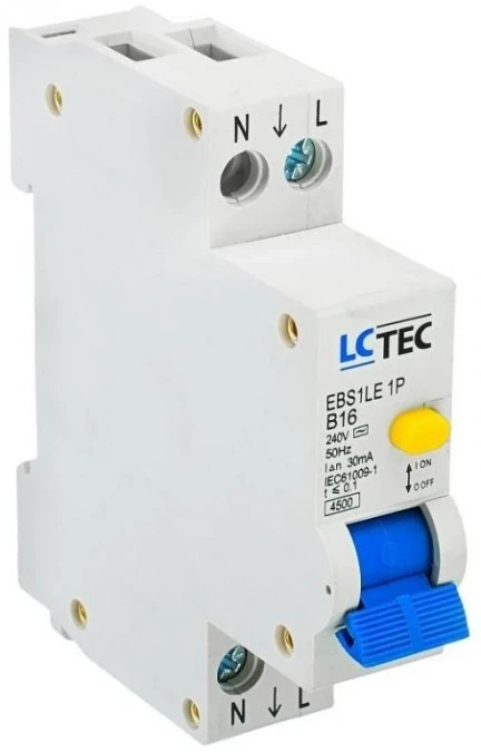 Wyłącznik różnicowoprądowy z członem nadprądowym 1P+N 1 mod.16A 30mA typ AC LC-Tec EBS1LE-30/16/AC LCTEC-EBS1LE-30/16/A