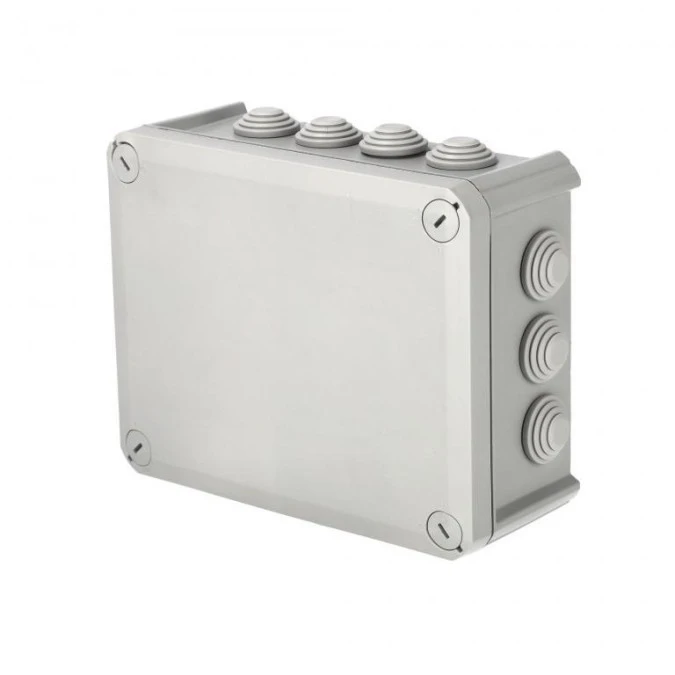 12. Puszka hermetyczna natynkowa z dławikami 190x150x75mm bezhalogenowa, odporna na UV, dekiel przykręcany IP66 szary 15.74