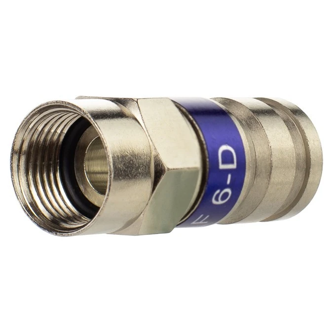 Wtyk antenowy F kompresyjny HQ niebieski na przewód RG6 TC6 Trishield 3SH75