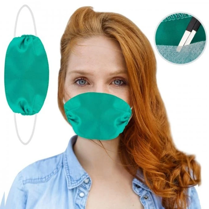 5. Maseczka wielorazowa dwuwarstwowa z wysokiej jakości bawełny z kieszenią na filtr turkusowa z białą gumką 2.07