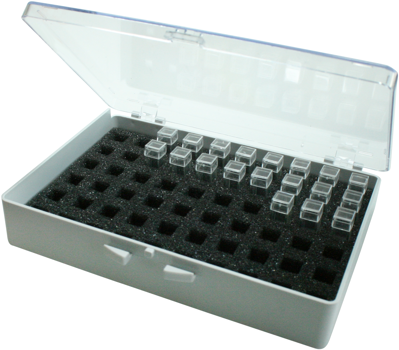 15. Assortment box, with 60 drawers, gray/transparent, (L x W x D) 157 x 110 x 25 mm, V11-3 119.54