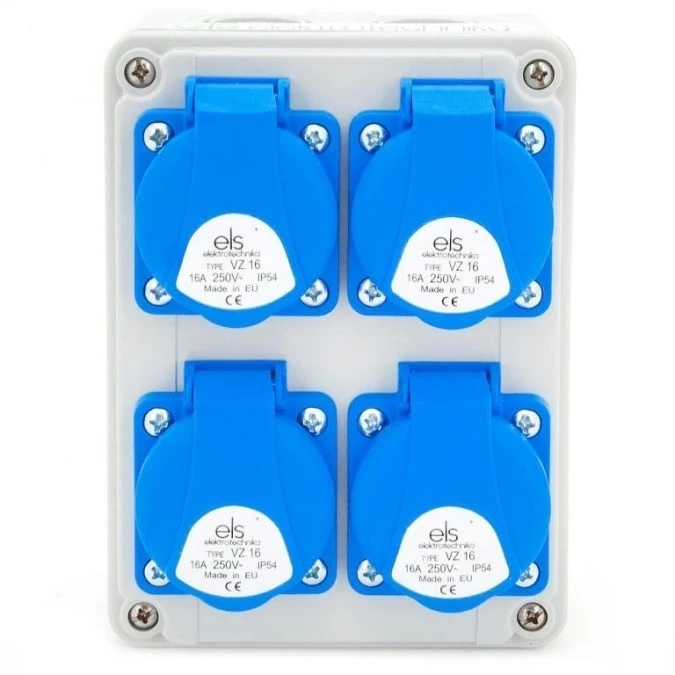 13. Rozdzielnia budowlana 2*16A/4P + 1*GS 230V, obudowa naścienna, ELS Elektrotechnika, N120/4 96.05