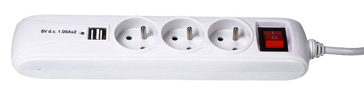 Przedłużacz mieszkaniowy z uziemieniem i wyłącznikiem +2 porty USB PM/5-3-1.5+W+2xUSB PM/0047