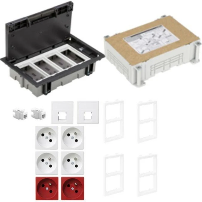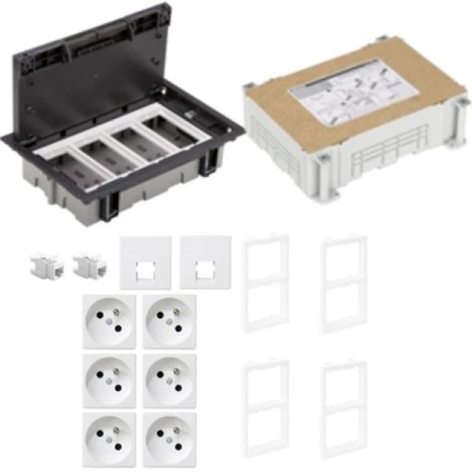 KONTAKT SIMON FLOOR BOX puszka podłogowa 4x gniazdo pojedyncze z/u + 2x DATA + 2x gniazdo RJ45 kat. 6 nieekranowany + kaseta do