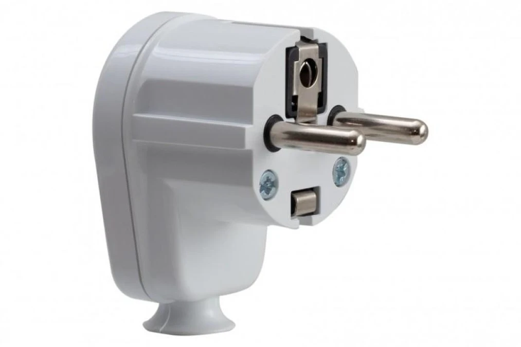 Wtyczka z uziemieniem kątowa 230V biała uni-schuko
