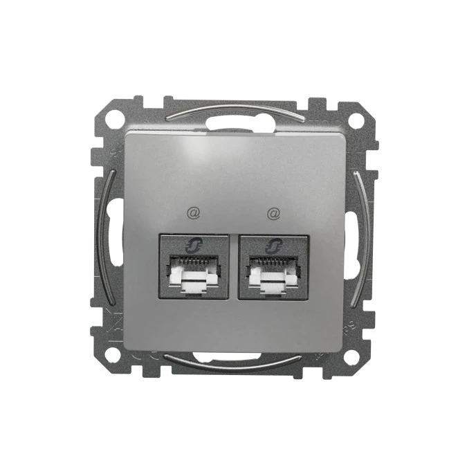 Gniazdo komputerowe podwójne RJ45 kat. 5e STP, srebrne aluminium, Sedna Design i Elements SDD113452S