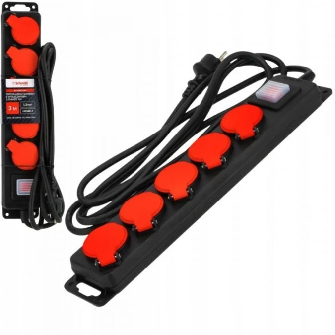 Przedłużacz gumowy listwa zasilająca z wyłącznikiem 3m 5 gniazd Schmith