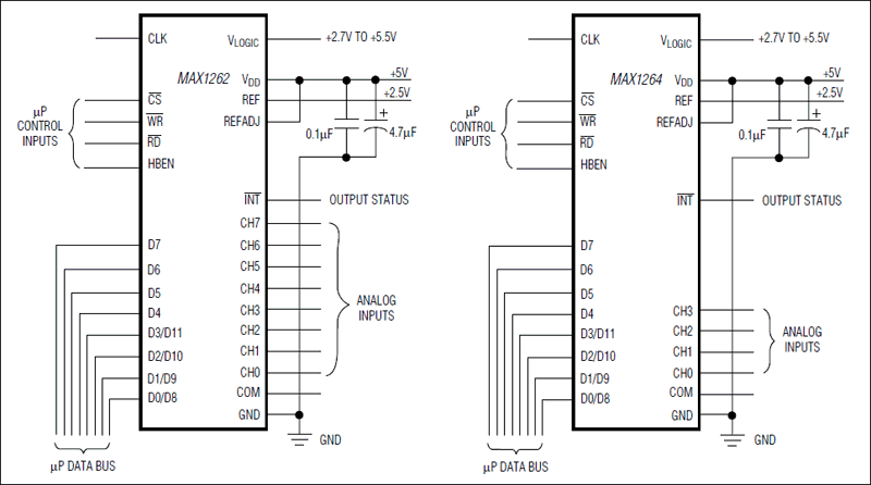 3. 400ksps, +5V, 8-/4-Channel, 12-Bit ADCs with +2.5V Reference and Parallel Interface Sample