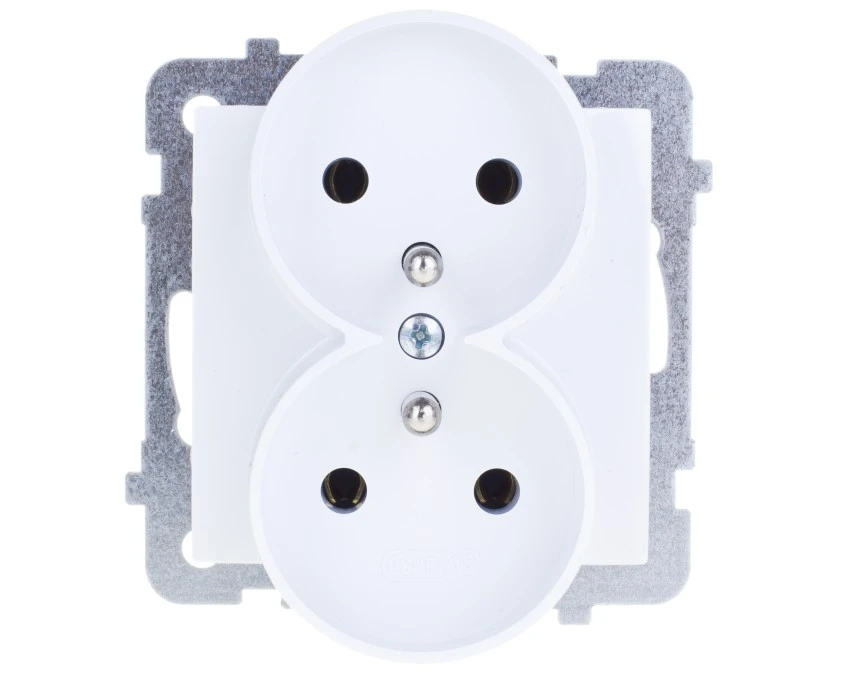 As Gniazdo Podwójne Z/U Z Przesłonami Białe Gp-2Grzp/M/00