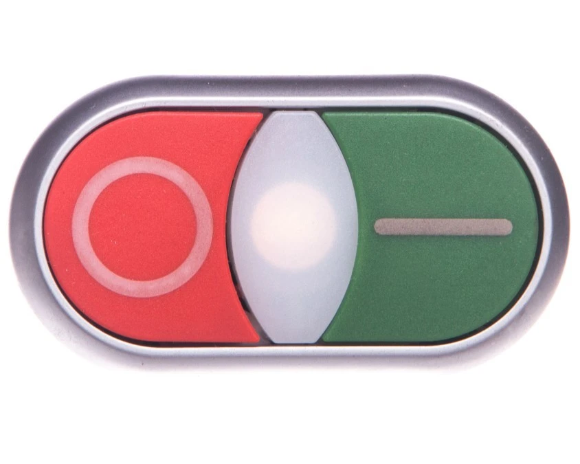 Napęd przycisku podwójny zielony/czerwony /I-O/ 22mm IP66 z podświetleniem z samopowrotem M22-DDLF-GR-X1/X0 284814