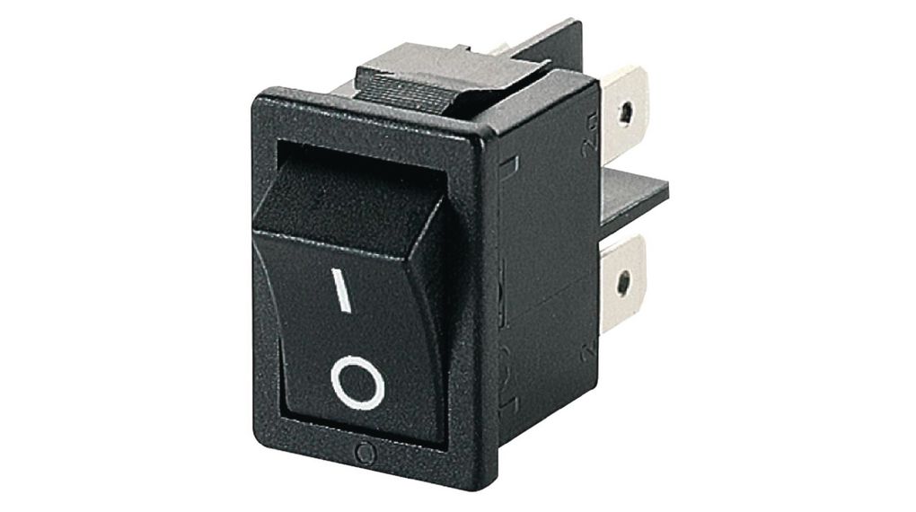 Przełącznik kołyskowy (Wł.)-wył Nie 4 A Podwójny pojedynczy rzut pin (DPNO) Czarny IP40 Marquardt