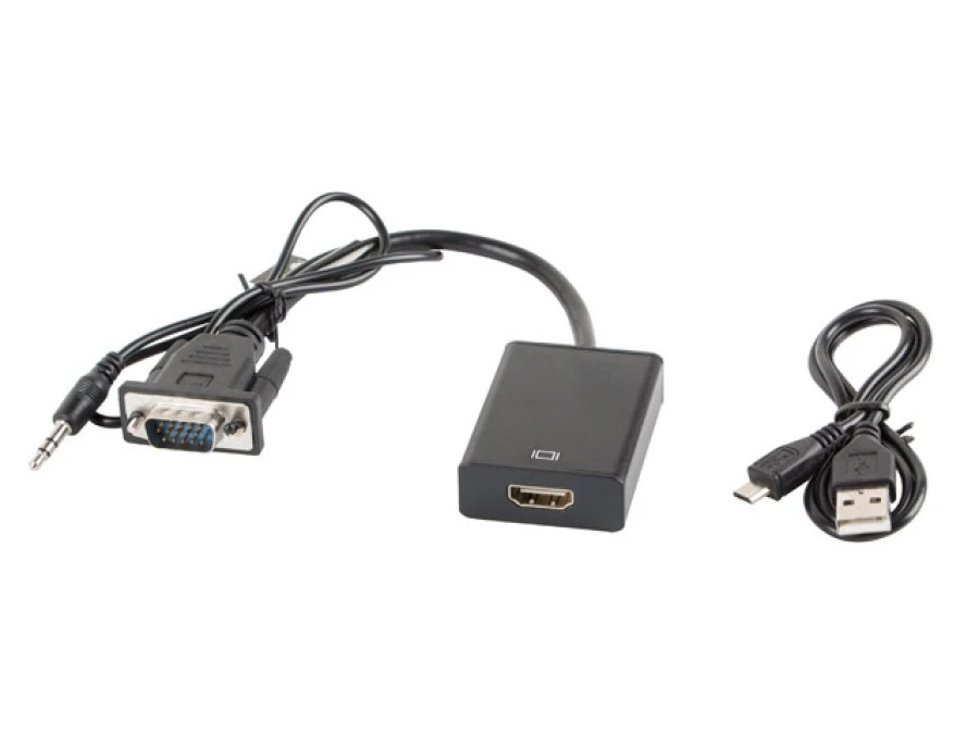 Adapter Vga(M)+Minijack 3.5Mm(M)-Hdmi(F) Na Kablu 20Cm Czarny Lanberg