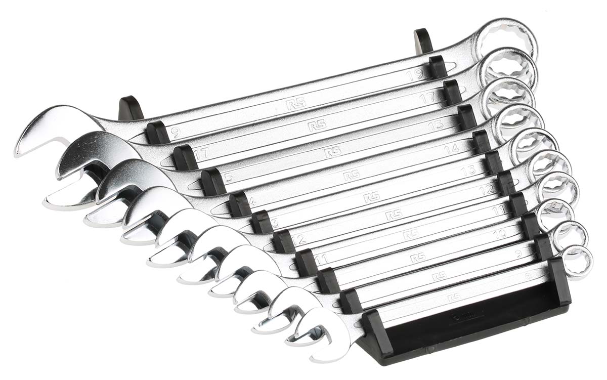 15. Zestaw narzędzi nastawnych Zestaw kluczy oczkowych RS PRO 8 → 19 mm 10 szt. Stal chromowo-wanadowa 216.75