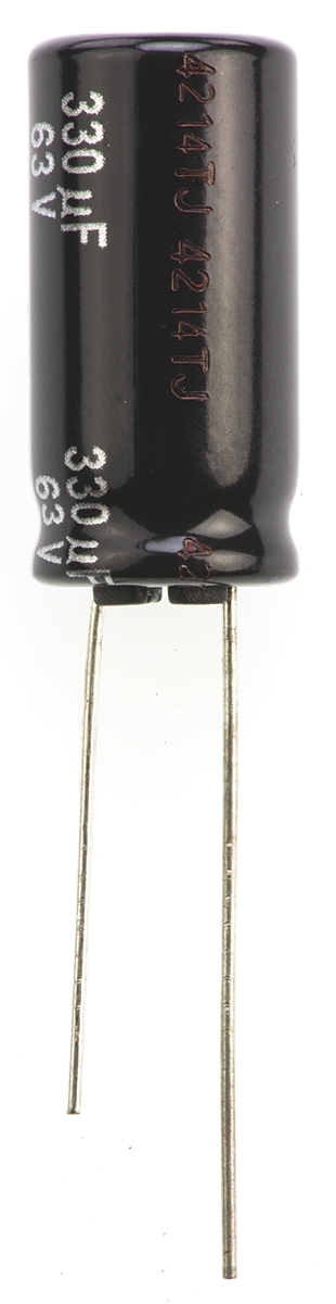 Kondensator 330μF 63V dc Radialny, Otwór przelotowy Panasonic roztaw: 5mm 10 (Dia.) x 20mm