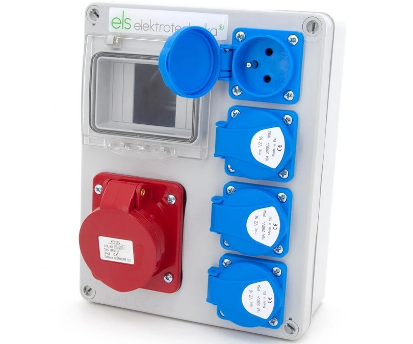 Rozdzielnica budowlana 16A/5P + 6*GS 230V, obudowa naścienna, ELS Elektrotechnika, N610