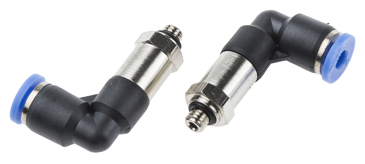 2. Złączka pneumatyczna M5 męskie Wciskane 4 mm RS PRO Adapter gwintowany kolankowy M5 męskie 97.77