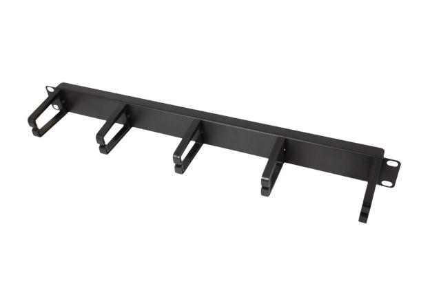 Organizator kabli RACK 19" 1U metalowy czarny z 5 uchwytami i przepustami