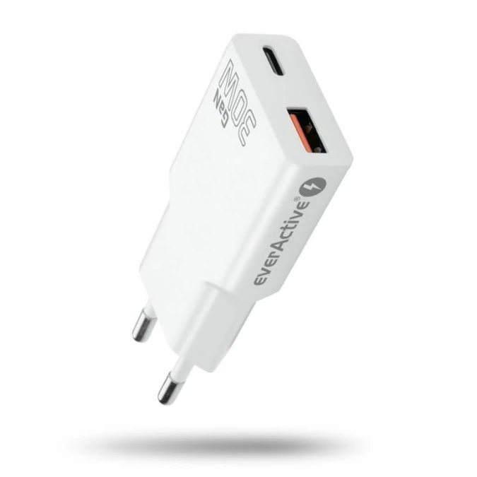 Ładowarka sieciowa everActive GaN SUPER SLIM SC-380Q z gniazdem USB QC3.0 oraz USB-C PD 30W