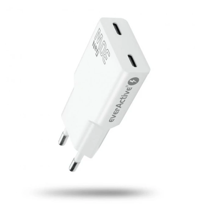 Ładowarka sieciowa everActive GaN SUPER SLIM SC-385Q z dwoma gniazdami USB-C PD 30W