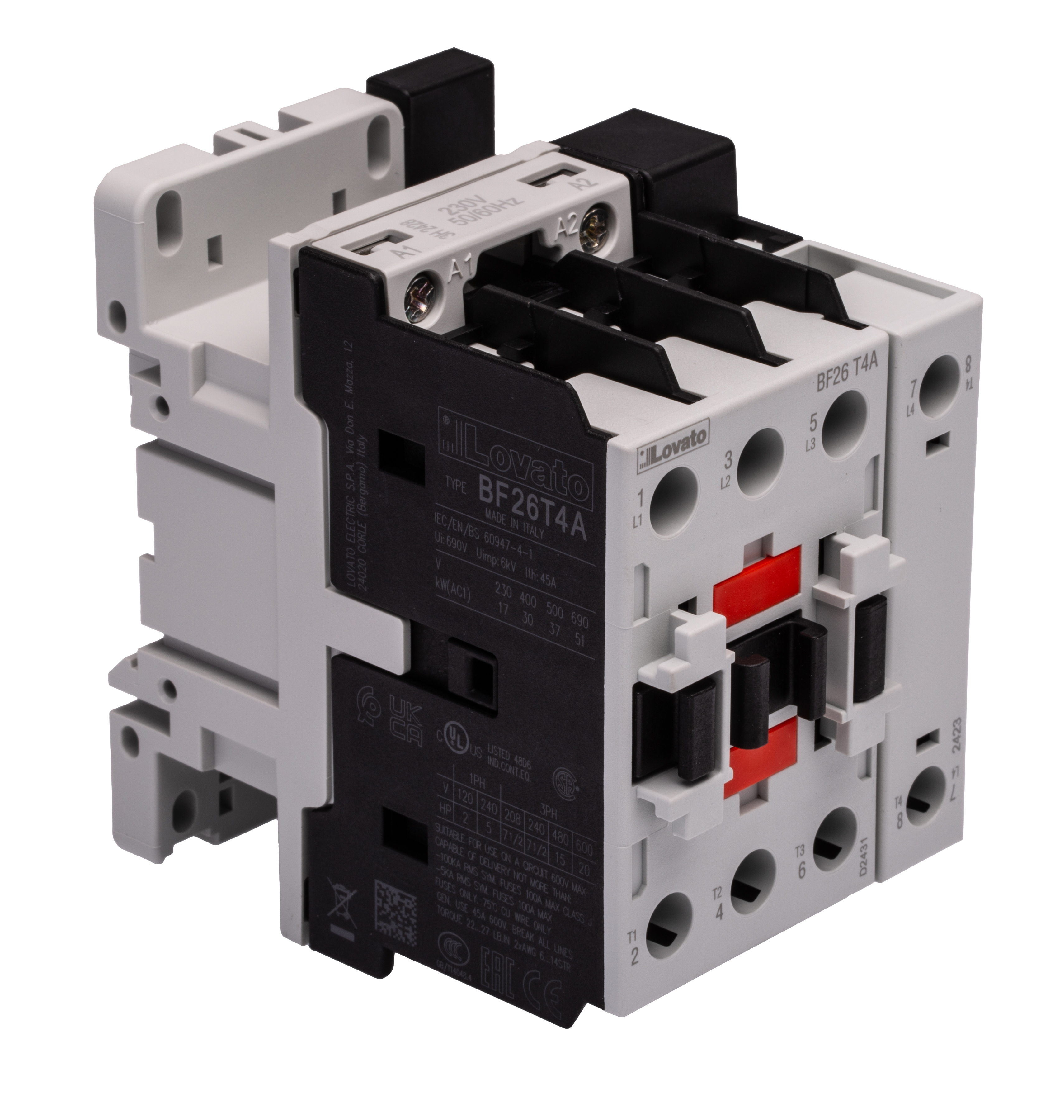 Stycznik 230 V AC Lovato styki: 4 13 kW 45 A 4NO Montaż na szynie DIN Śruba BF26T4A230